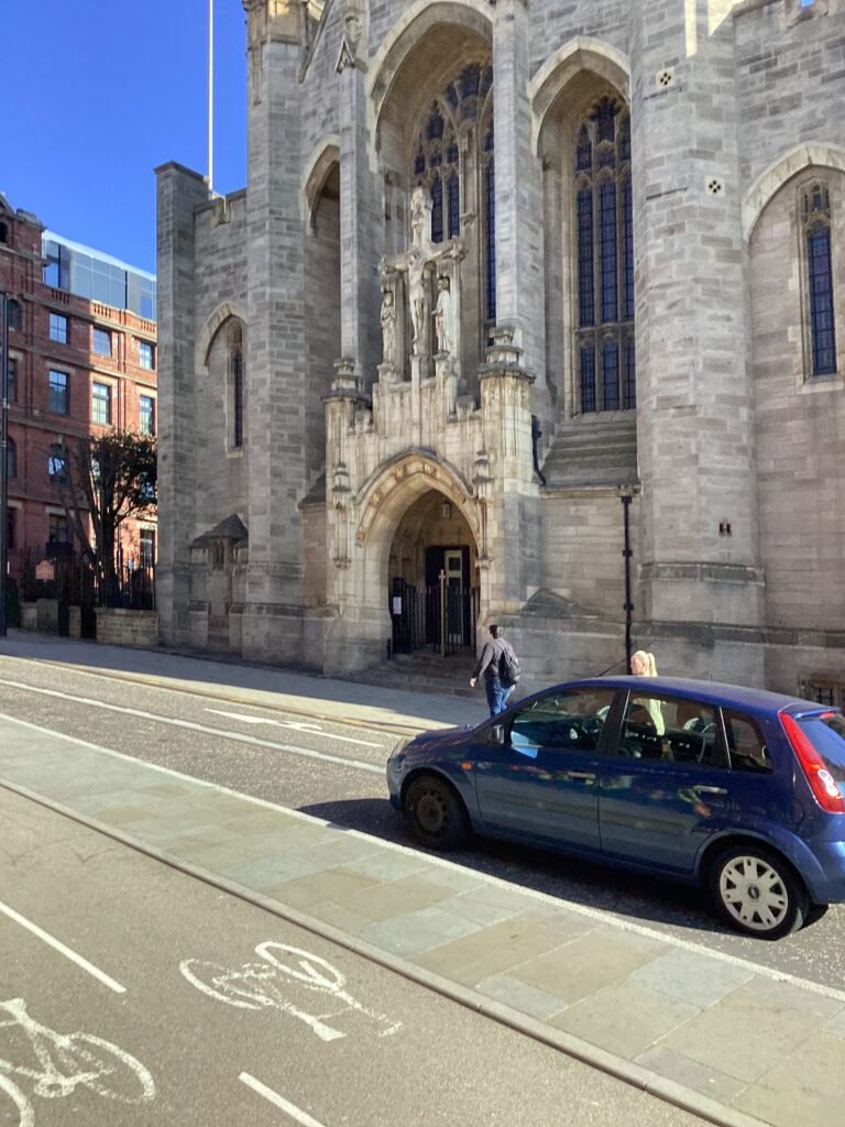 In Alwoodley, we noticed lots of physical features like trees, grass, and open fields. It felt more calm and peaceful, and we could hear birds singing! The human features we spotted included houses, shops, roads, and bus stops. Most of the buildings were smaller and there was more space between them.