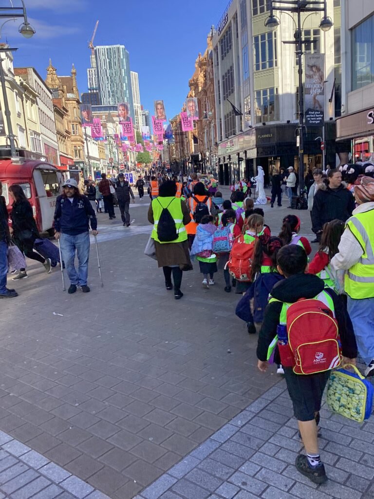 When we thought about our trip to Leeds city centre, we remembered how busy and noisy it was. There were tall buildings, big shops, offices, and lots of traffic. Leeds had fewer trees and green spaces, but many more people and vehicles.